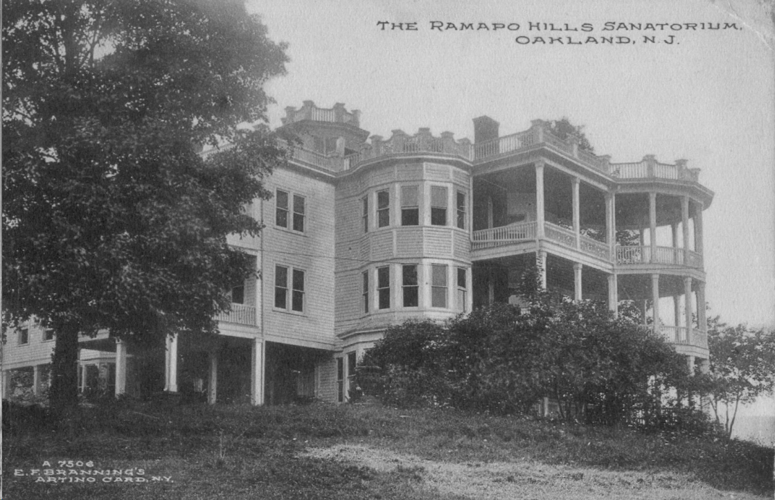 Another example is the Ramapo Hills Sanitorium built by the Clapp sisters of Butler, New Jersey. Their Sanitoruium was built around a Bush stone farmhouse. And each new mansion was virtually on Ramapo Valley Road as was the core structure farmhouse. Ultimately, the Ramapo Hills Sanitorium was purchased by Mrs. Florence Vernam as it presented more suitable accommodations for her wealth status and in keeping up with her well heeled neighbors on Oakland.